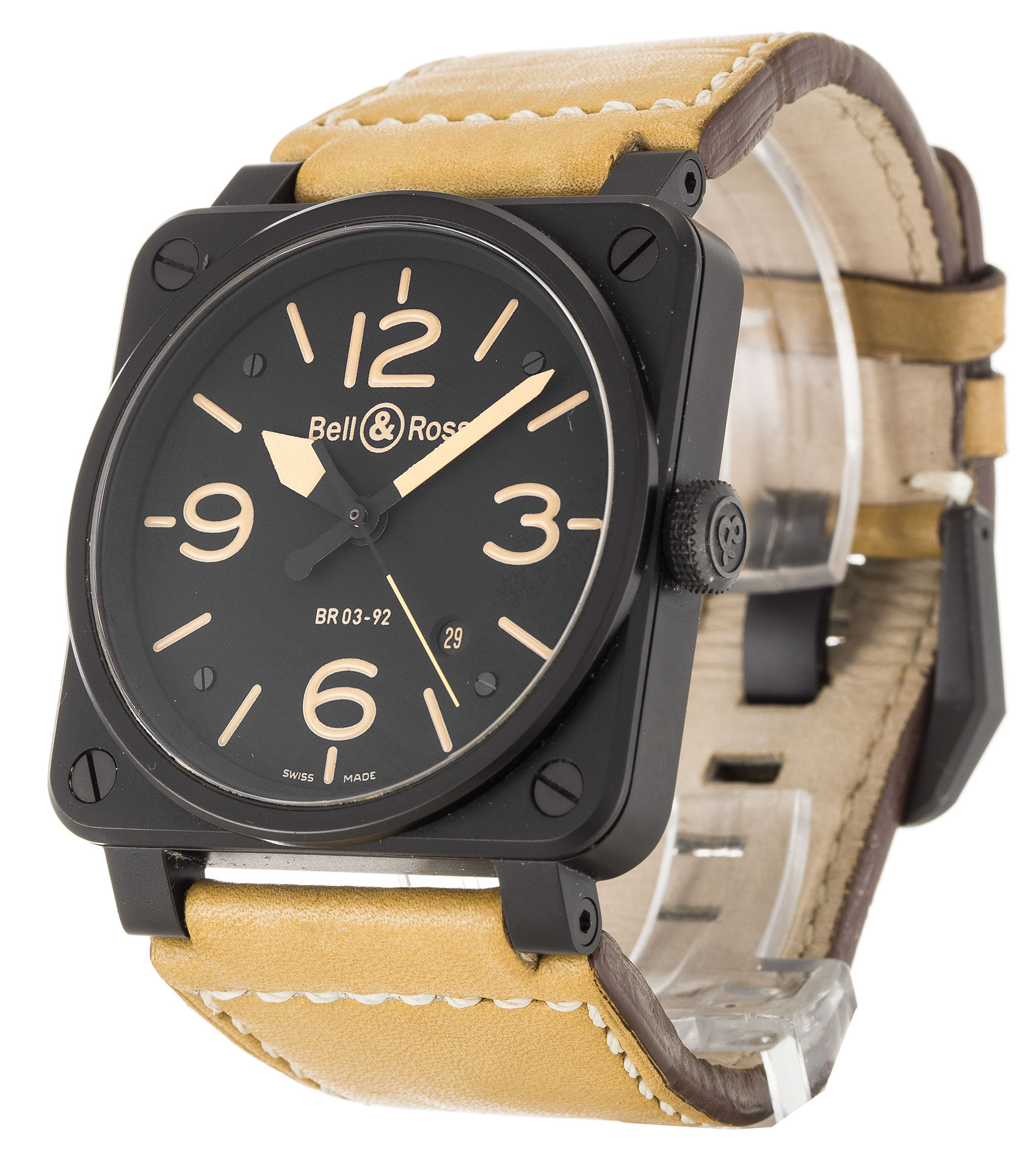 La caja de acero con acabado en PVD negro le confiere a este reloj un aspecto masculino y sofisticado, mientras que la correa de cuero en color beige añade un toque de elegancia. La esfera de tipo árabe en cuartos en color negro completa el look atemporal de este reloj. Con una resistencia al agua garantizada, el BR03-92-S es el compañero perfecto para cualquier ocasión.